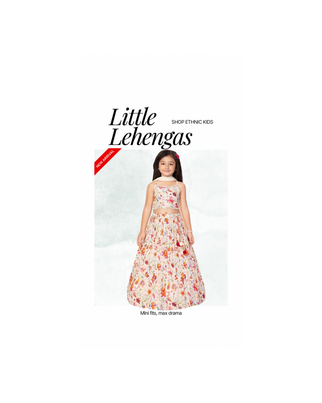 Elegant Cream Floral Printed Kids Lehenga Set – Style 4927