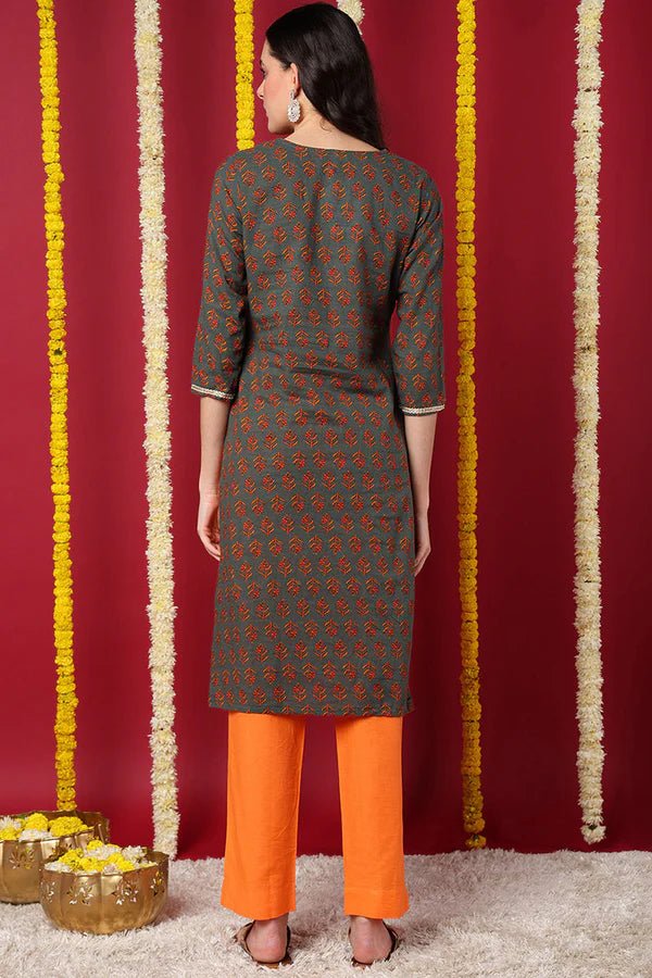 Bring home timeless elegance with our Olive Cotton Blend Floral Embroidered Straight Kurta. This kurta is crafted using a soft and breathable cotton blend that keeps you comfortable throughout the day. The intricate floral embroidery on the front enhances its ethnic appeal, making it an excellent choice for both casual and semi-formal occasions.